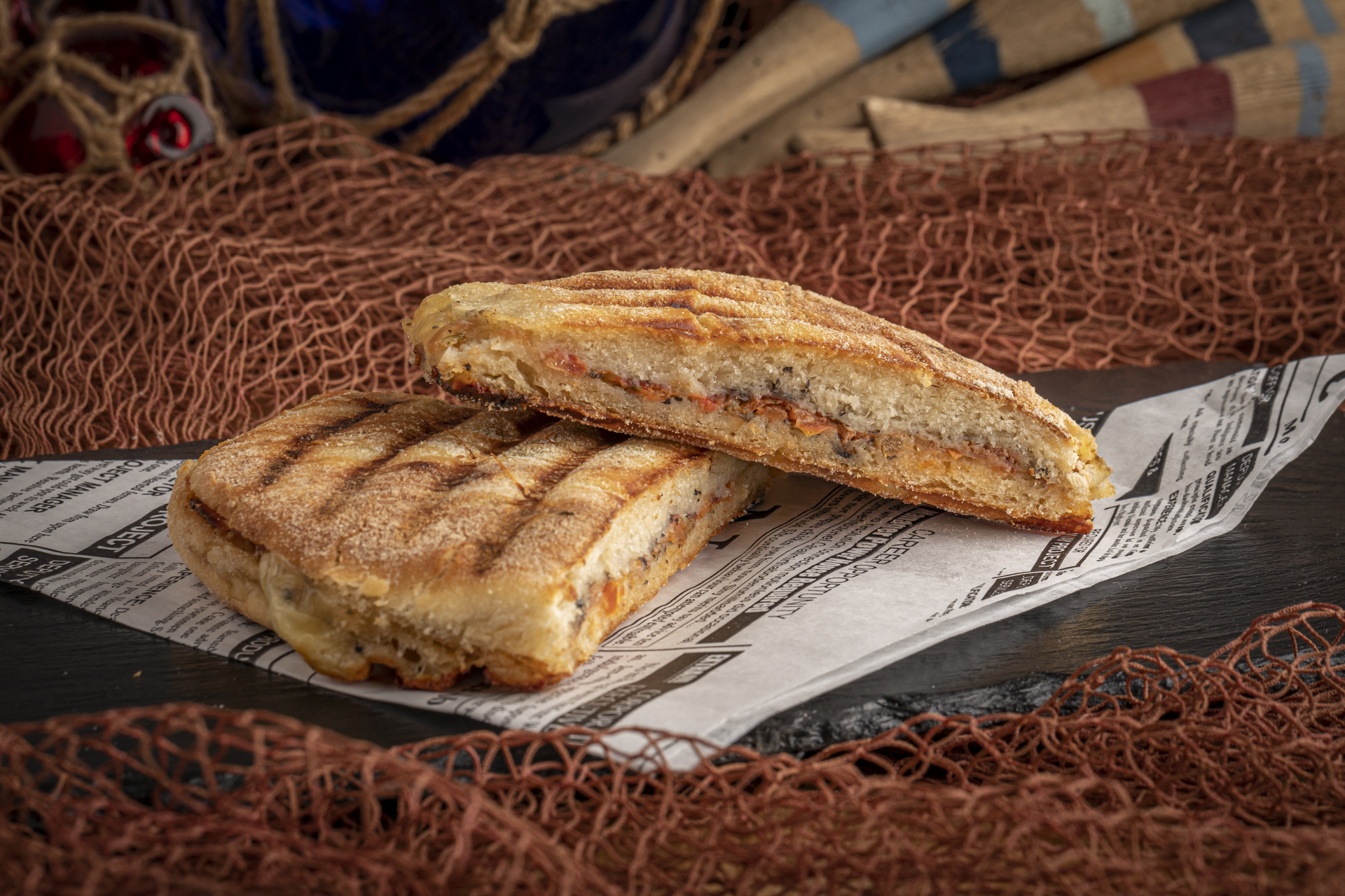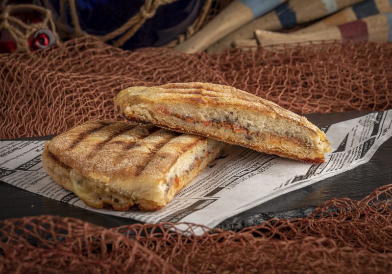 Bikini de antxoa, jamón, queso, mantequilla de trufa y tomate